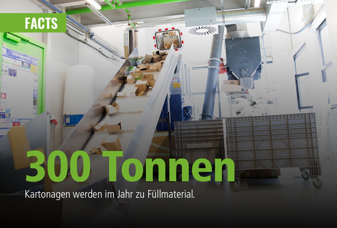 Die Verpackungen unserer eingehenden Ware bekommen bei uns ein zweites Leben. Aus Altpapier wird mit einer speziellen Verpackungsmaschine neues Füllmaterial für unseren Versand erzeugt – sauber, nachhaltig und wiederverwendbar.